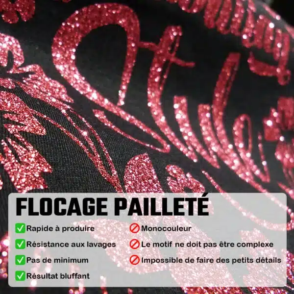 - ✔ Flocage pailleté : Apportez une touche d'éclat et de glamour à vos créations.